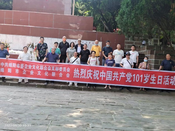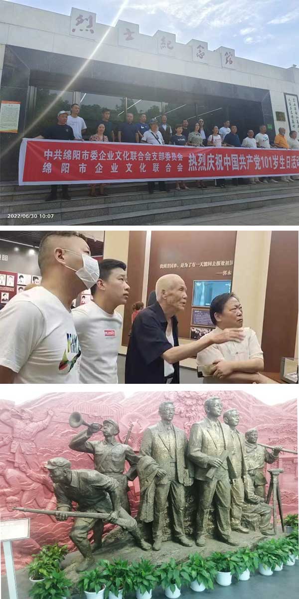 2022年6月30日,盛夏赤日,晴空萬里,炎熱無比。中共綿陽市企業(yè)文化聯(lián)合會支部委員會慶祝黨的101歲生日活動在綿陽英雄紀念館隆重舉行。上午九十許,委員會全體黨員,入黨積極分子和提交了入黨申請書積極向黨組織靠攏的有識之士及綿陽市企業(yè)文化聯(lián)合會主要領(lǐng)導(dǎo),各縣市區(qū)分會長、主任,各企業(yè)文化建設(shè)、各愛心工程專項工作部負責(zé)人 一行二十多人多人 ,齊聚在烈士紀念館門口,在書記劉堂益的帶領(lǐng)下,有組織的入館參觀。綿陽市英雄烈士紀念館,座落在綿陽市南山公園之巔,四周蒼松翠柏環(huán)抱,時有鳥叫蟬鳴,一派天地人和、神圣莊嚴之巍峨,令人肅然起敬。館內(nèi)陳列著為新中國成立流血犧牲的先烈英魂,記載著數(shù)以萬計的綿陽英雄兒女的歷史功勛,展示著為黨為國前仆后繼的偉大的綿陽赤子的傳奇故事。一件件烈士的遺品,一幅幅催人淚下的畫卷,一幕幕無私奉獻的字幕,一首首充滿紅色正能量詩篇,激勵大家奮進直前。大家受教頗深!更加感恩崇拜一直引領(lǐng)我們奮勇向前的偉大、光榮、正確的中國共產(chǎn)黨。大家由衷的共同心聲就是祝福黨的生日快樂!